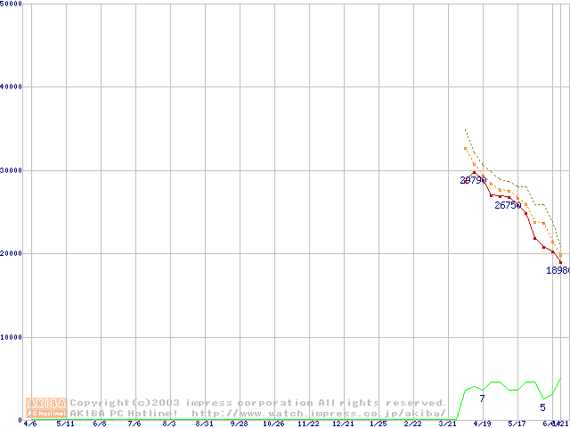 Travelstar 80GN (9.5mm,4200rpm,UltraATA/100,8MB,FDB,40GB/Platter)の最安値推移