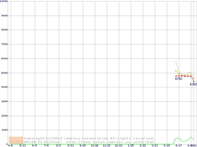 Socket 370 (PGA,FSB 133MHz,L2 64KB,Nehemiah)の最安値推移