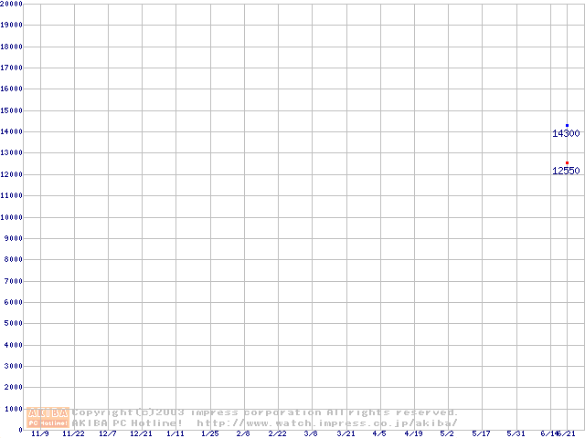 | Travelstar DK23EA (9.5mm,4200rpm,UltraATA/100,512KB)の最安値推移 |