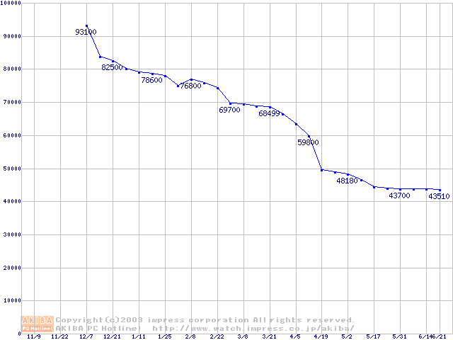 | [↑前グラフ]: | Socket 478 (micro-PGA,FSB 800MHz,L2 512KB,Hyper-Threading,Northwood)の最安値推移 |