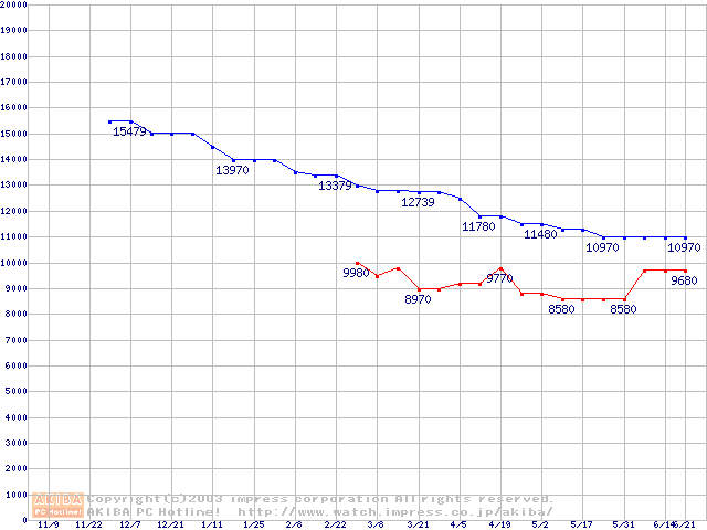 | [↑前グラフ]: | SpinPoint V80 (5400rpm,UltraATA/133,2MB)の最安値推移 |