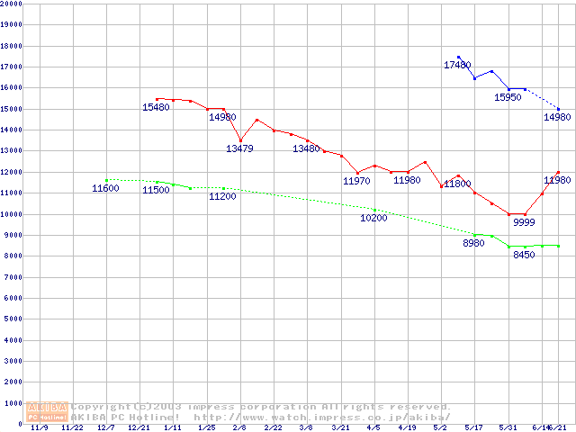 | [↓次グラフ]: | WD Protege (5400rpm,UltraATA/100)の最安値推移 |