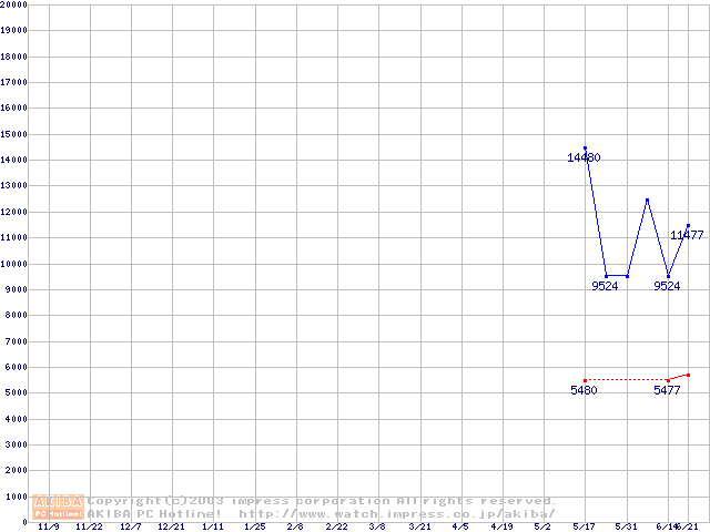 | [↓次グラフ]: | PC2700(DDR333) DDR SDRAM DIMMの最安値推移 |