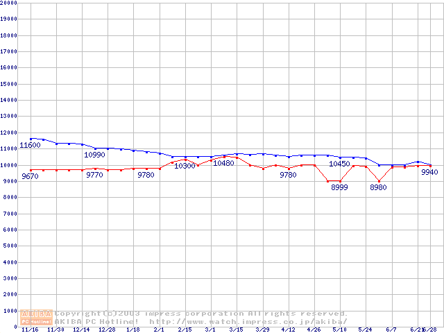 | [↑前グラフ]: | 2.5インチHDD主要製品の最安値推移 |
