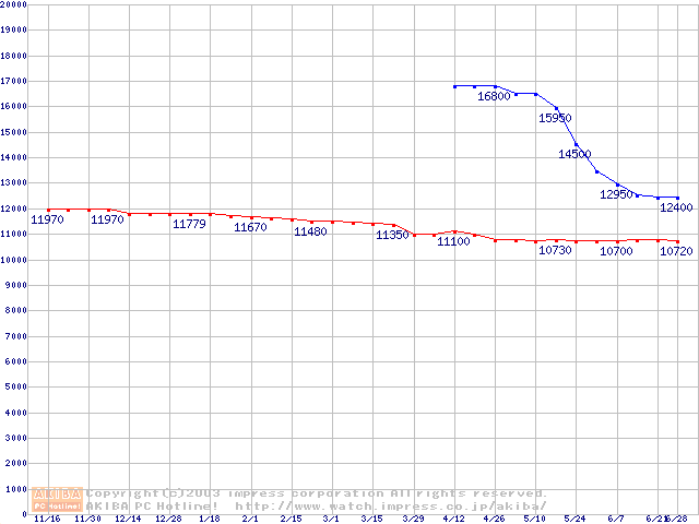 | [↑前グラフ]: | 2.5インチHDD 20GB~30GB未満(9.5mm厚)の最安値推移 |