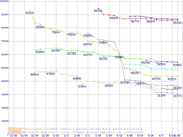 Socket A・FSB 266MHzの最安値推移