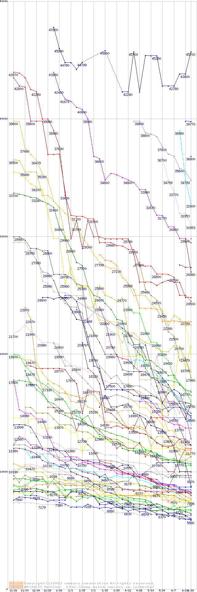 HDD 20GB~30GB未満(5400rpmクラス)の最安値推移