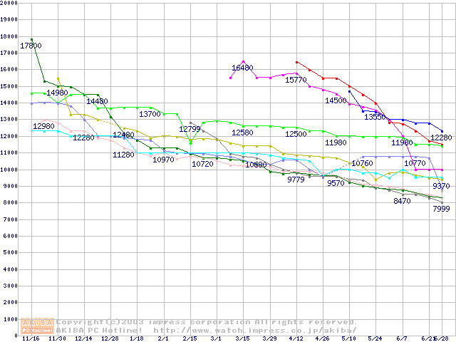 HDD 100~160GB未満(7200rpmクラス)の最安値推移
