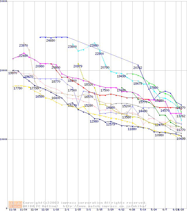 HDD 100~160GB未満(7200rpmクラス)の最安値推移