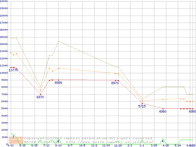 PC2100(DDR266) DDR SDRAM DIMM ECC対応の最安値推移
