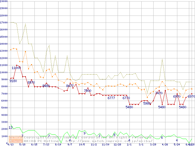 PC133 SDRAM DIMM CasLatency=3 ECC対応 Registeredタイプの最安値推移