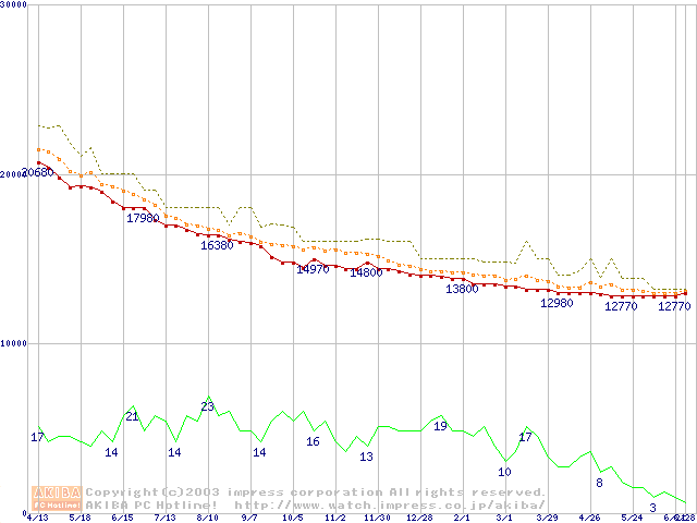 MKシリーズ (9.5mm,4200rpm,2MB,FDB,20GB/Platter)の最安値推移