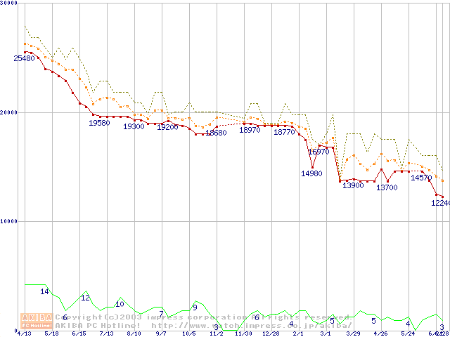 WD Caviar (7200rpm,UltraATA/100,2MB)の最安値推移