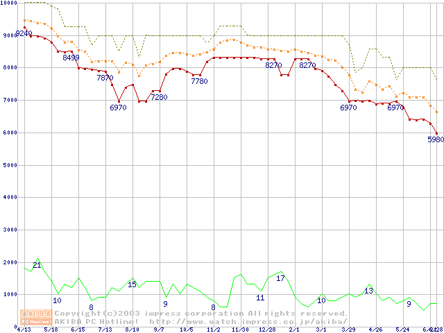 WD Protege (5400rpm,UltraATA/100)の最安値推移