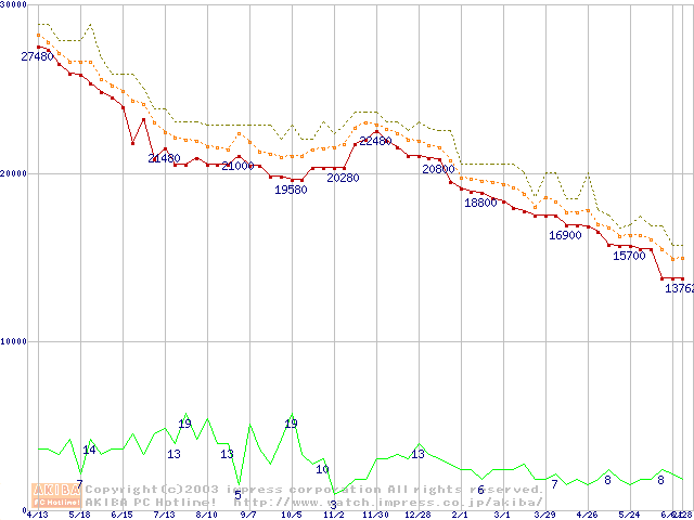 WD Caviar(Special Edition) (7200rpm,UltraATA/100,8MB)の最安値推移