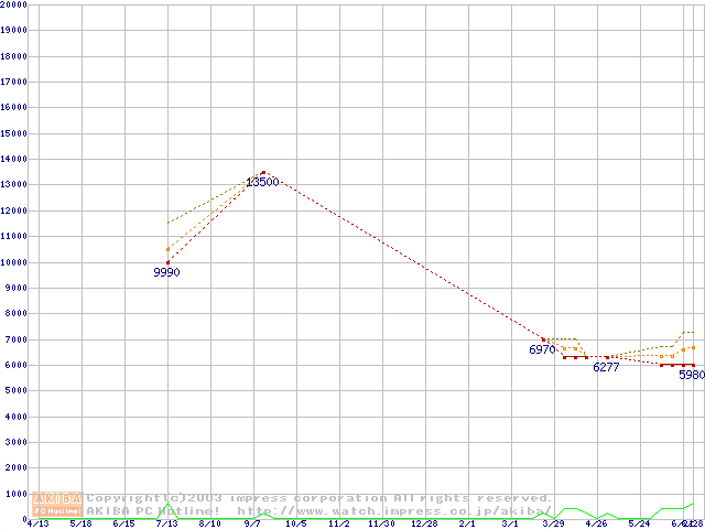 PC2700(DDR333) DDR SDRAM DIMM ECC対応 Registeredタイプの最安値推移