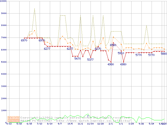 PC800-40 DRDRAM RIMM ECC対応の最安値推移