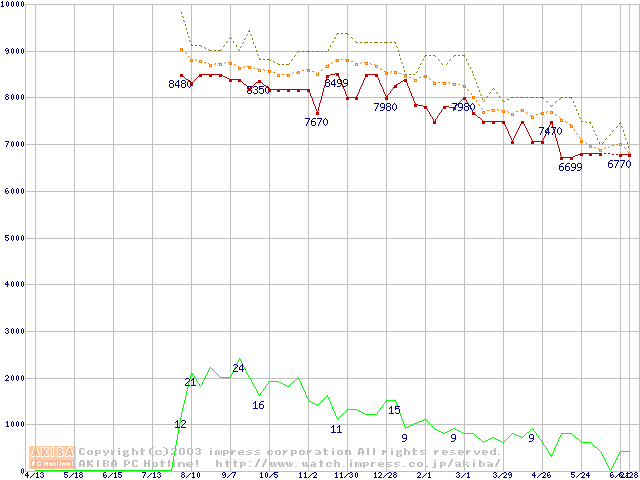 Fireball 3 (5400rpm,UltraATA/133,2MB,BB)の最安値推移