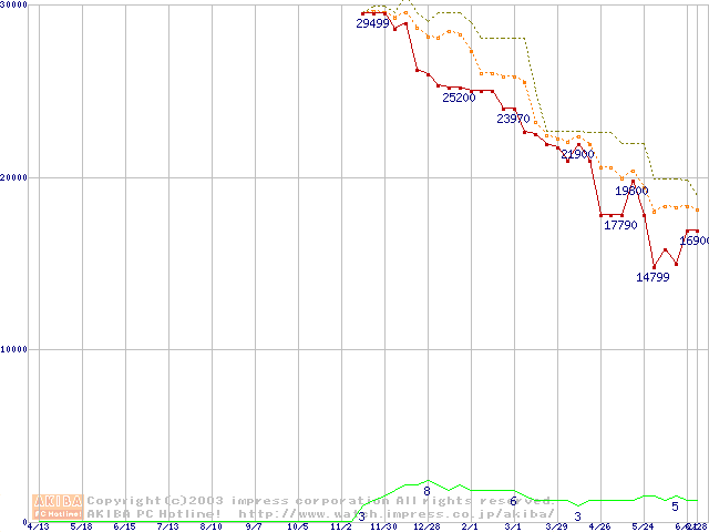 WD Caviar (7200rpm,UltraATA/100,2MB)の最安値推移