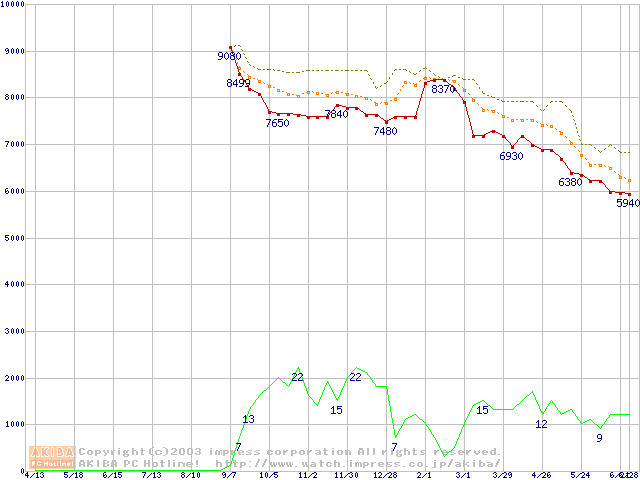 DiamondMax Plus 8 (7200rpm,2MB,UltraATA/133,FDB)の最安値推移