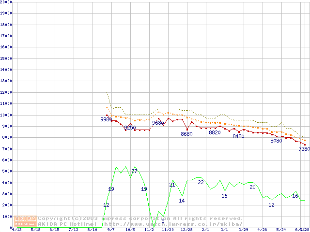 DiamondMax 16 (5400rpm,UltraATA/133,2MB,80GB/Platter,FDB)の最安値推移