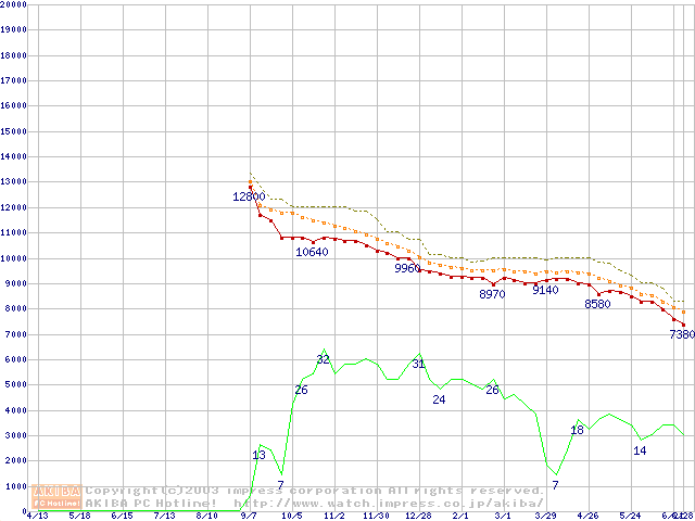 DiamondMax Plus 9 (7200rpm,2MB,UltraATA/133,FDB)の最安値推移