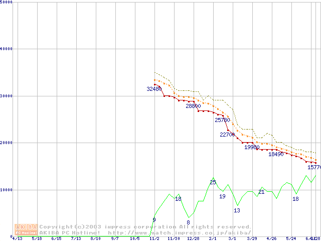 DiamondMax Plus 9 (7200rpm,8MB,UltraATA/133,FDB)の最安値推移