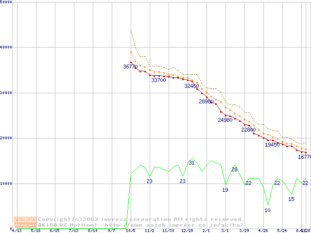 Deskstar 180GXP (7200rpm,8MB,UltraATA/100,FDB)の最安値推移