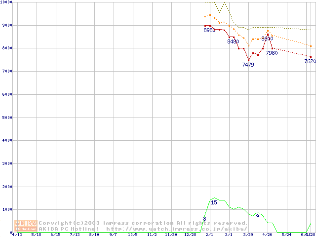 HDD 40GB~50GB未満(5400rpmクラス)の最安値推移