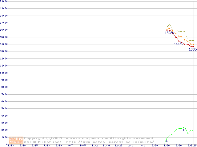 SpinPoint V80 (5400rpm,UltraATA/100,2MB)の最安値推移