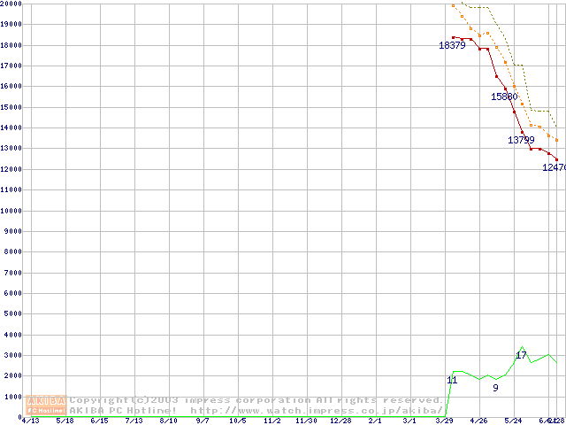 Travelstar 80GN (9.5mm,4200rpm,UltraATA/100,2MB,FDB,40GB/Platter)の最安値推移