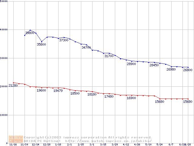| [↑前グラフ]: | MKシリーズ (9.5mm,7200rpm,16MB,FDB)の最安値推移 |
