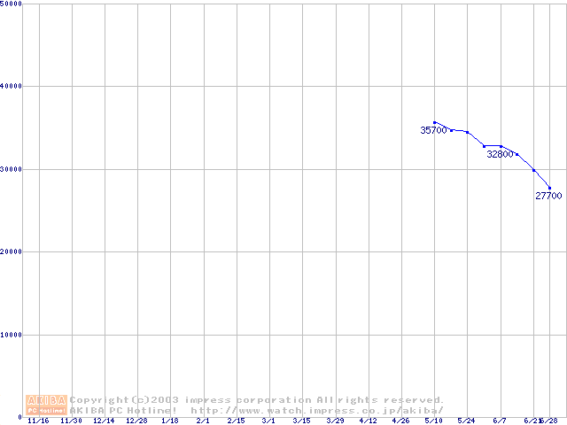 | [↑前グラフ]: | MKシリーズ (9.5mm,5400rpm,16MB,FDB)の最安値推移 |