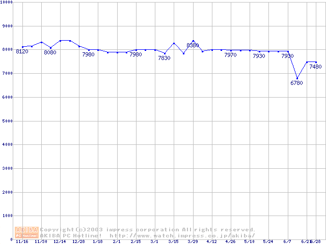 | Jupitor (7200rpm,2MB,FDB,UltraATA/100)の最安値推移 |