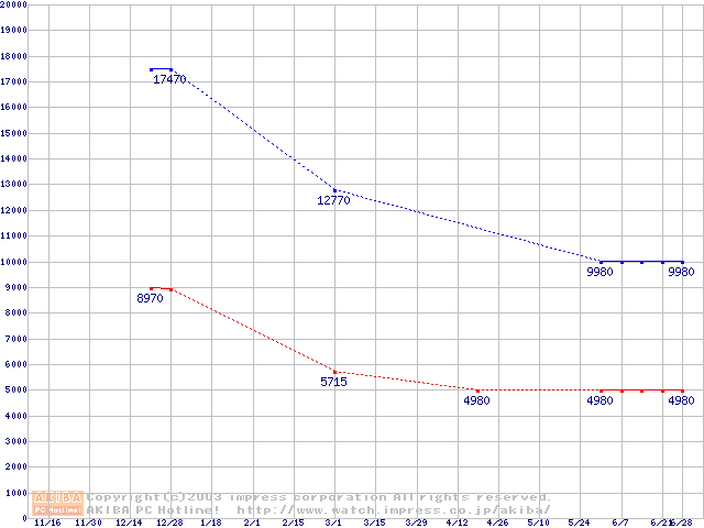 | [↓次グラフ]: | PC133 SDRAM DIMM CasLatency=3の最安値推移 |