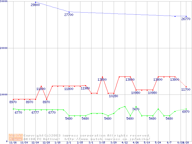 | [↓次グラフ]: | PC100 SDRAM DIMM CasLatency=2の最安値推移 |