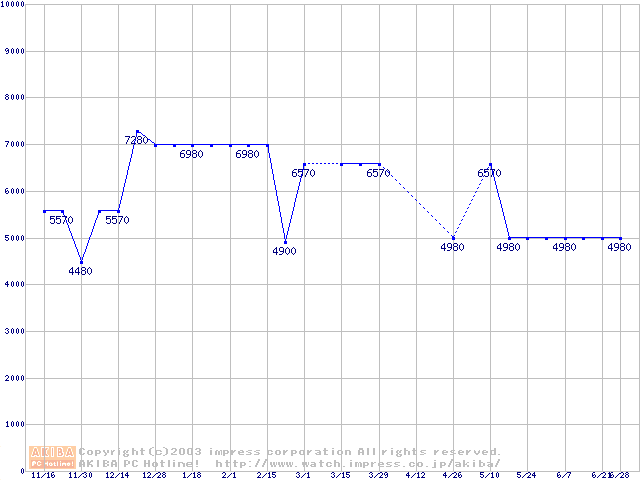 | [↓次グラフ]: | PC800-40 DRDRAM RIMMの最安値推移 |