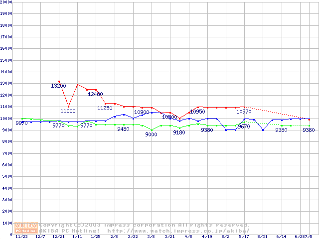 | [↑前グラフ]: | 2.5インチHDD主要製品の最安値推移 |