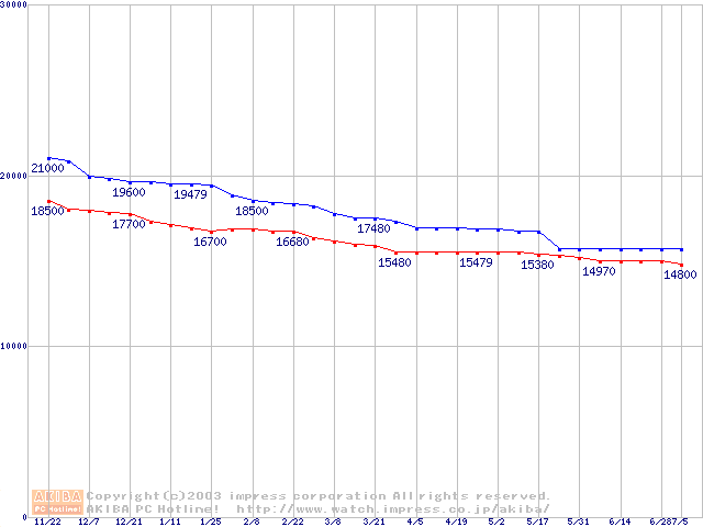 | [↓次グラフ]: | 2.5インチHDD 50GB~60GB以下(9.5mm厚,7200rpm)の最安値推移 |