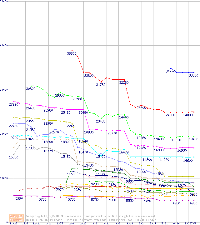 Socket A・FSB 200MHzの最安値推移