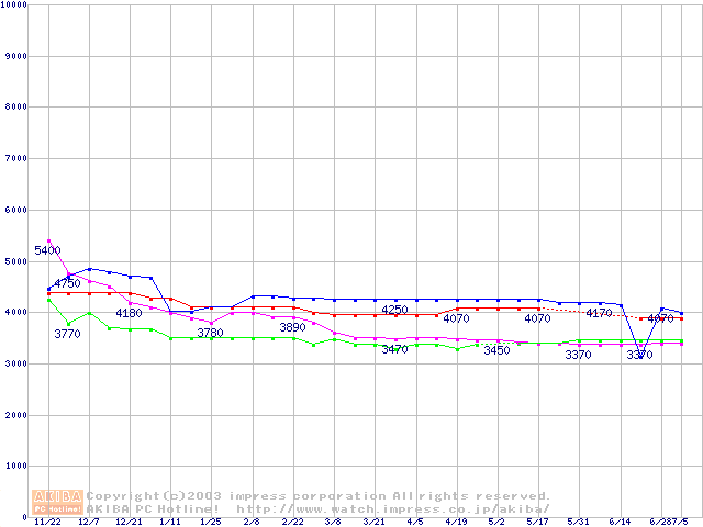 Socket A・FSB 200MHzの最安値推移
