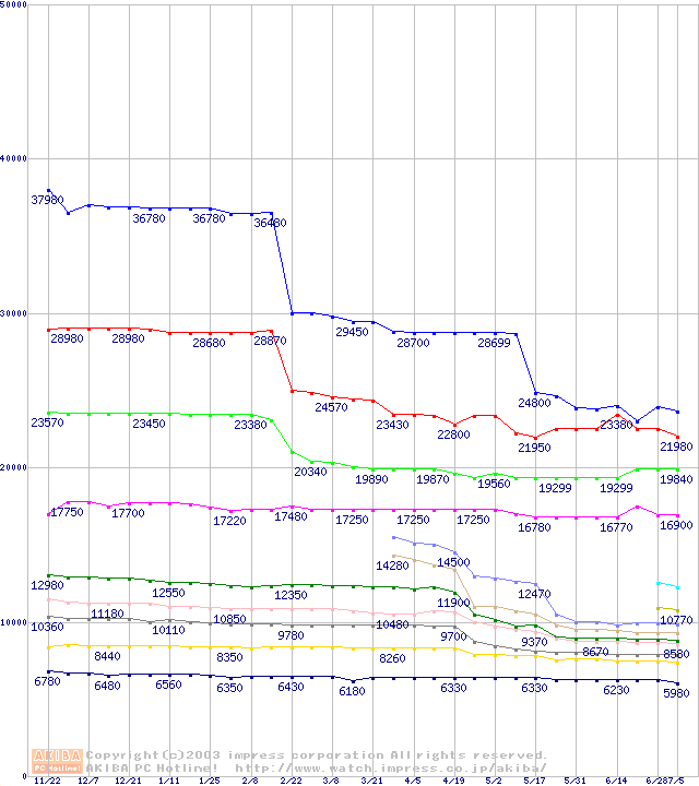 Socket 370・FSB 133MHzの最安値推移