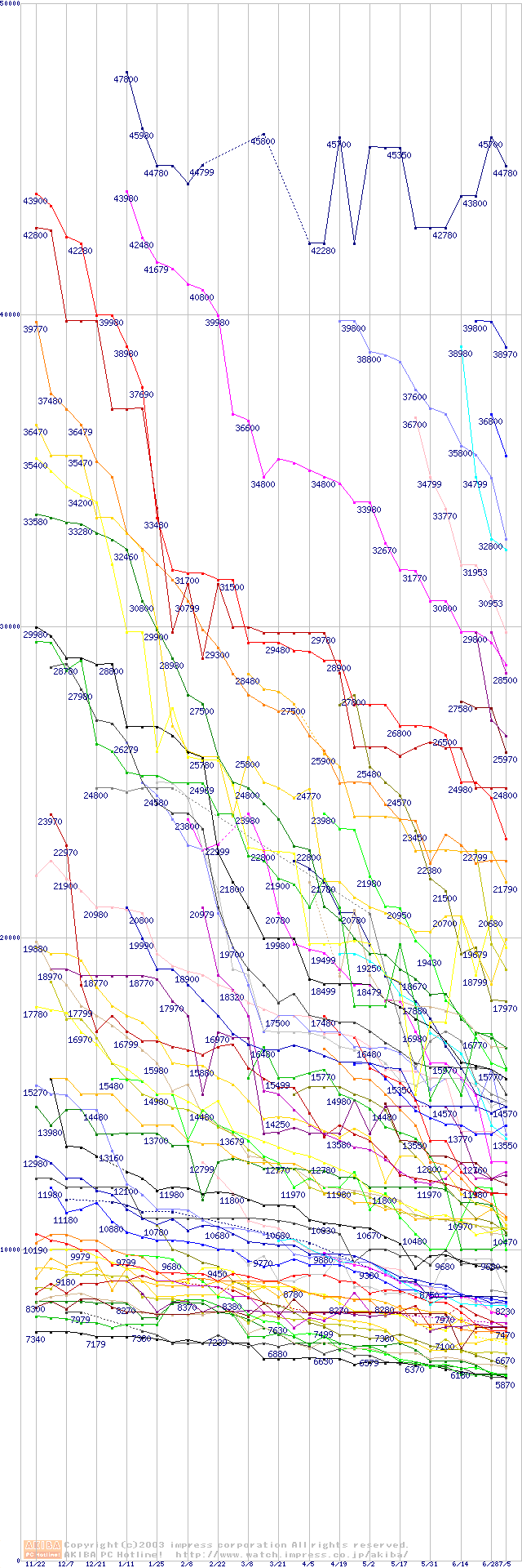 HDD主要製品の最安値推移