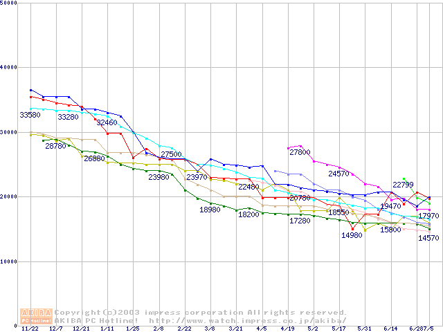 HDD 160~200GB未満(7200rpmクラス)の最安値推移