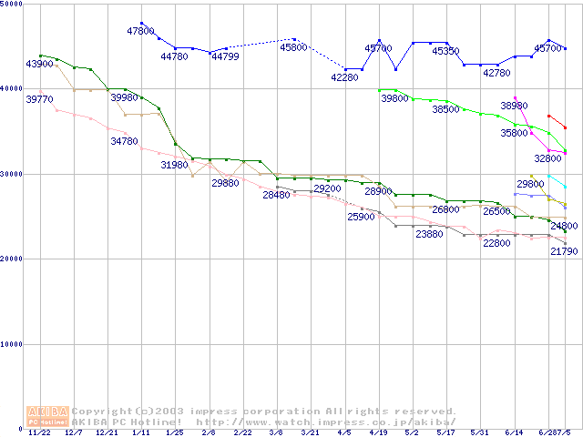 HDD 200GB以上(7200rpmクラス)の最安値推移