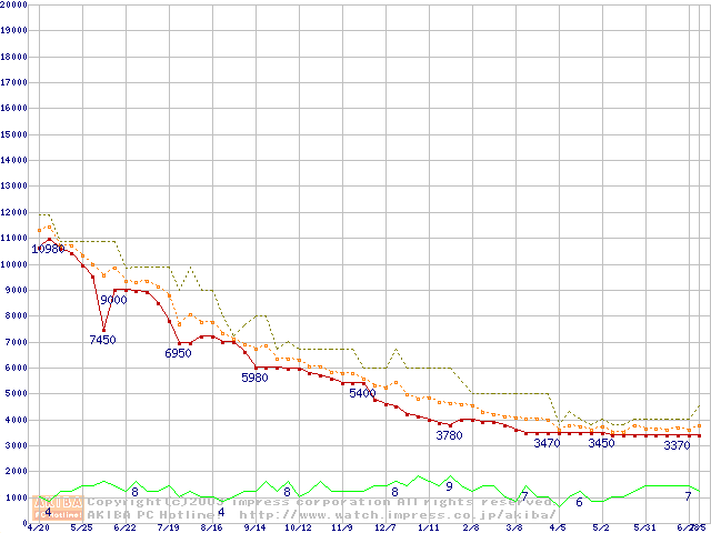 Athlon 1.1GHz(FSB200) バルクの価格推移