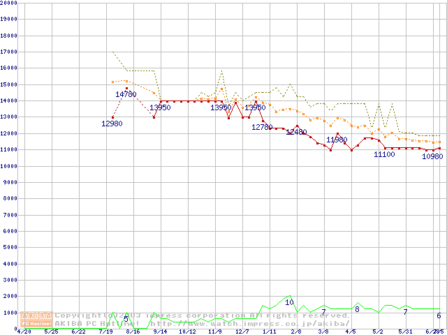 CPU主要製品(最安値1万円~2万円未満)の最安値推移