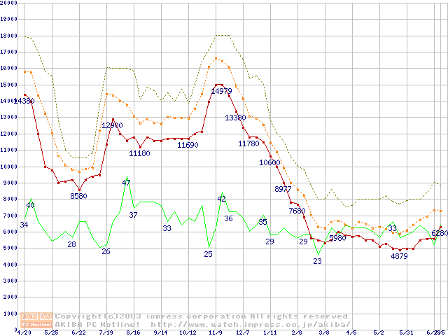 メモリ主要製品の最安値推移