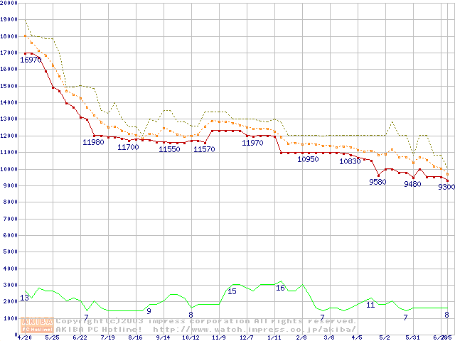 WD Caviar (7200rpm,UltraATA/100,2MB)の最安値推移