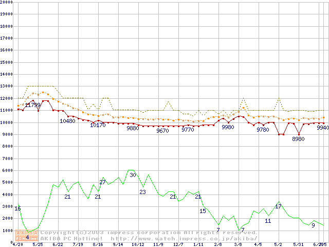 Travelstar 40GN IC25N020ATCS04 (20GB)の価格推移